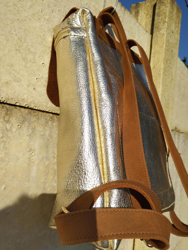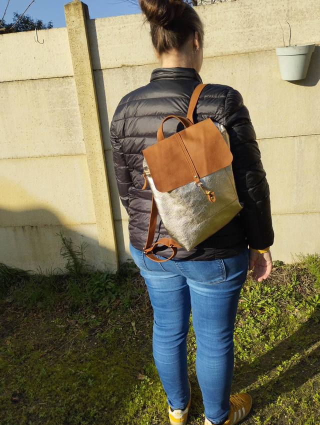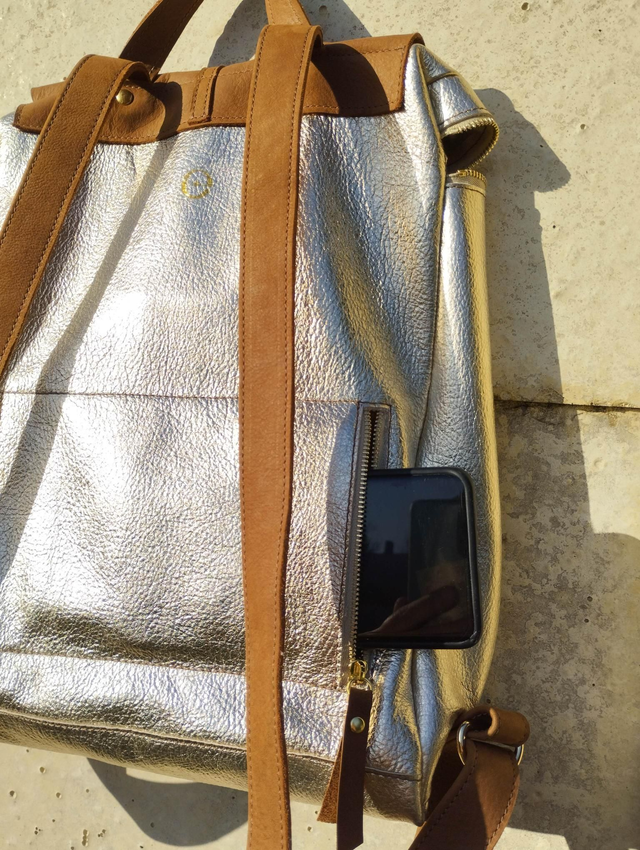 Petite poche intérieure sur le devant du sac et poche zippée extérieure à l'arrière du sac. Bretelles réglables jusqu'à 70 cm